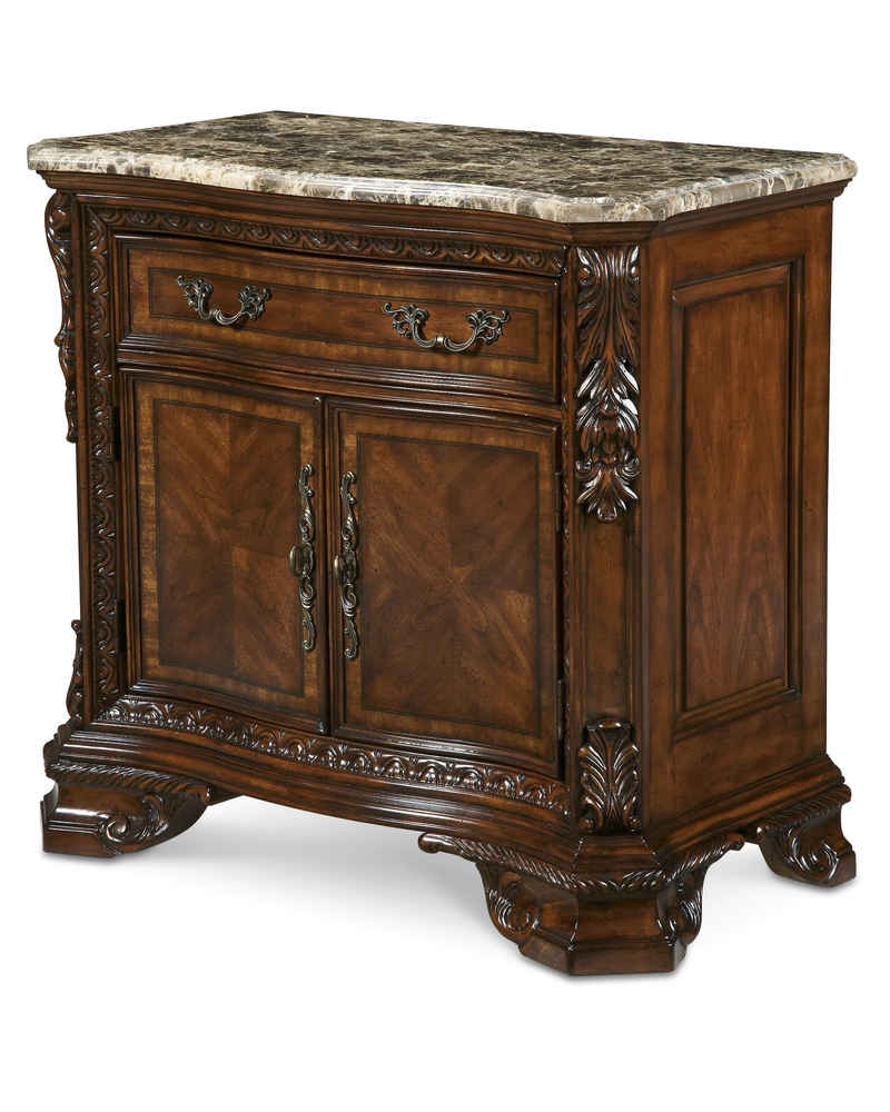 The handsome Old World Marble Top Nightstand has a secret: a storage tray hidden behind the upper frame molding. The tray is accessed by opening ...